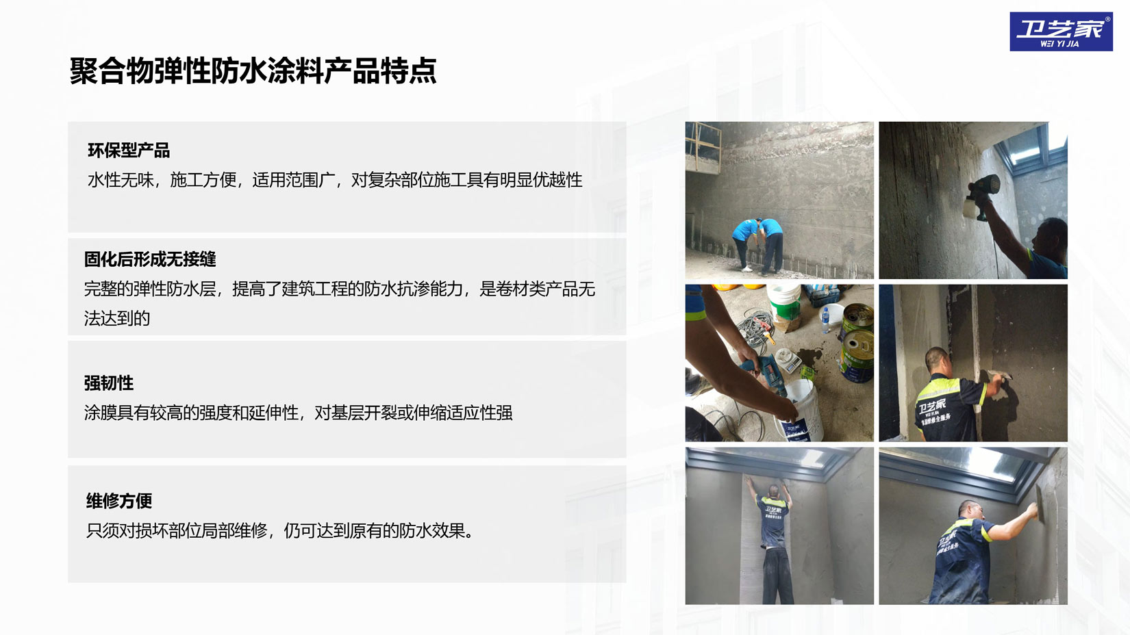 1.環保型產品,水性無味,施工方便,適用范圍廣,對復雜部位施工具有明顯優越性。